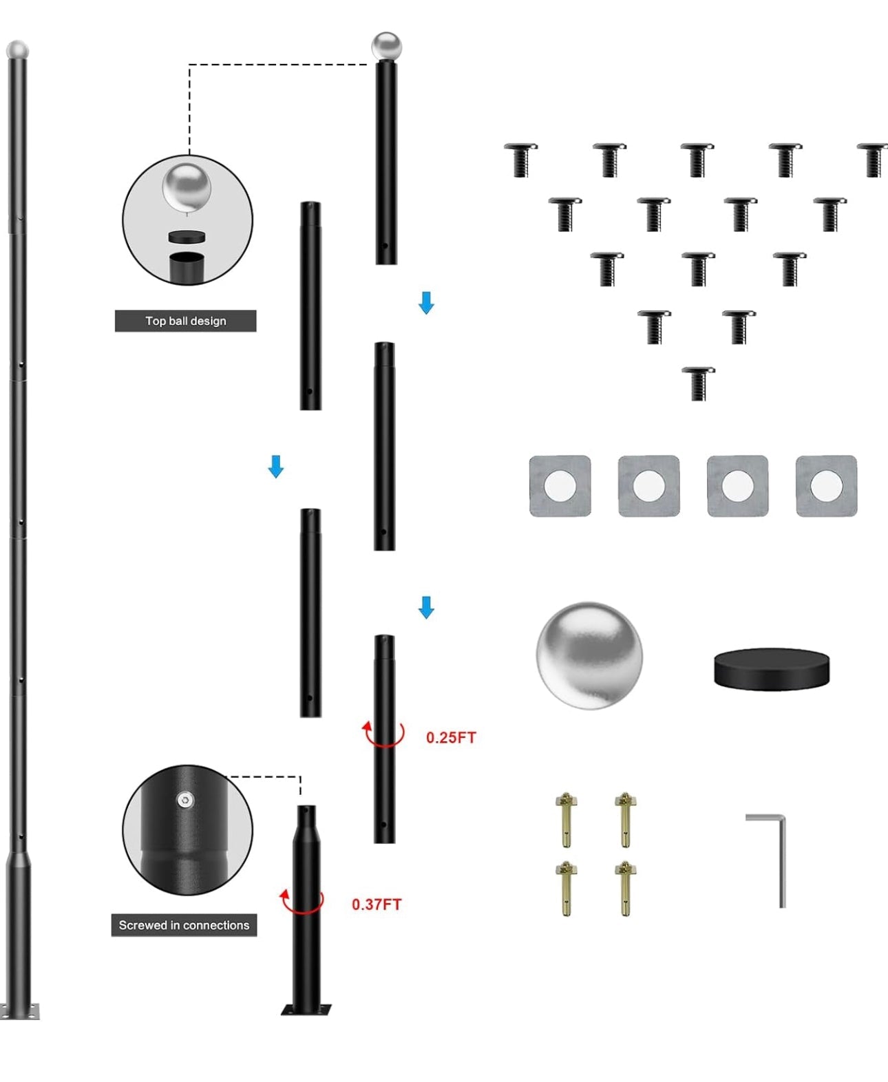 - Assemble the Pole: Connect the pole sections using the provided bolts and ensure alignment.