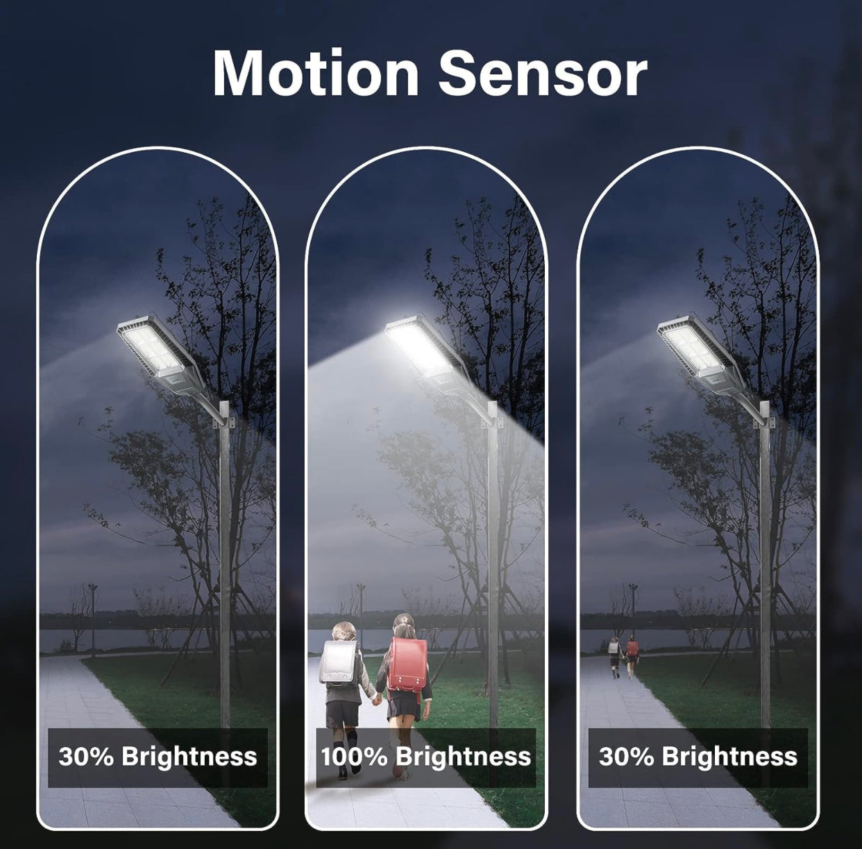 - Adaptive Brightness Control: Smart controller detects movement. boosting brightness to 100% when motion is sensed (e.g.. vehicles. pedestrians) and dimming to 30% energy-saving mode after 20 seconds of inactivity—balances security with efficiency.