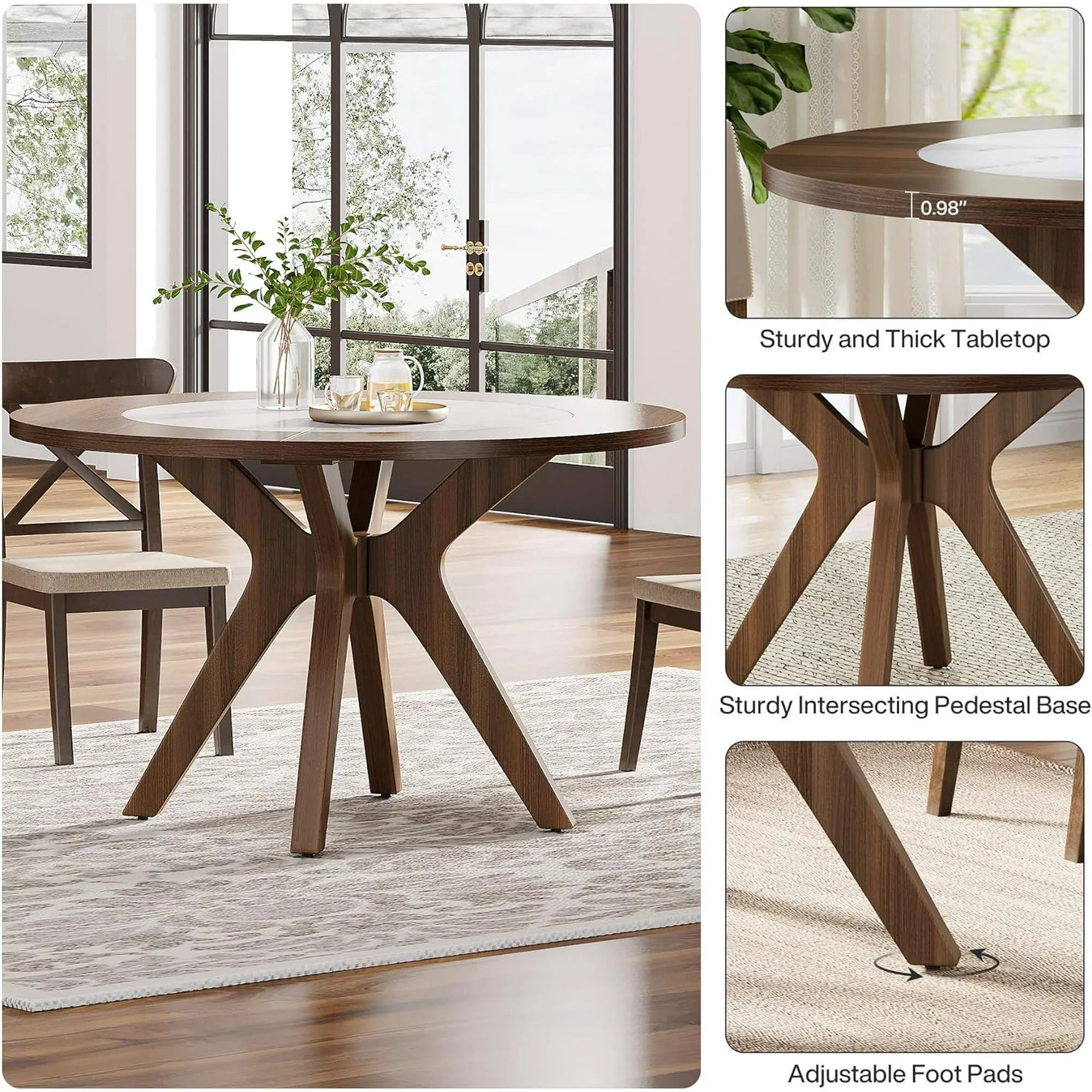 Clark Round Rustic Farmhouse Dining Table For 4