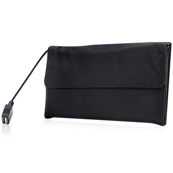 The folding solar charger utilizes PET laminated high efficient solar panel and compact design for maximum performance and portability which make it be a perfect solution for all types of outdoor portable power needs. Where there is sunlight. there is power!