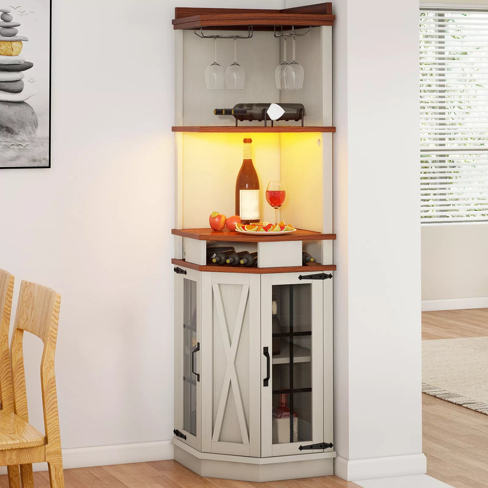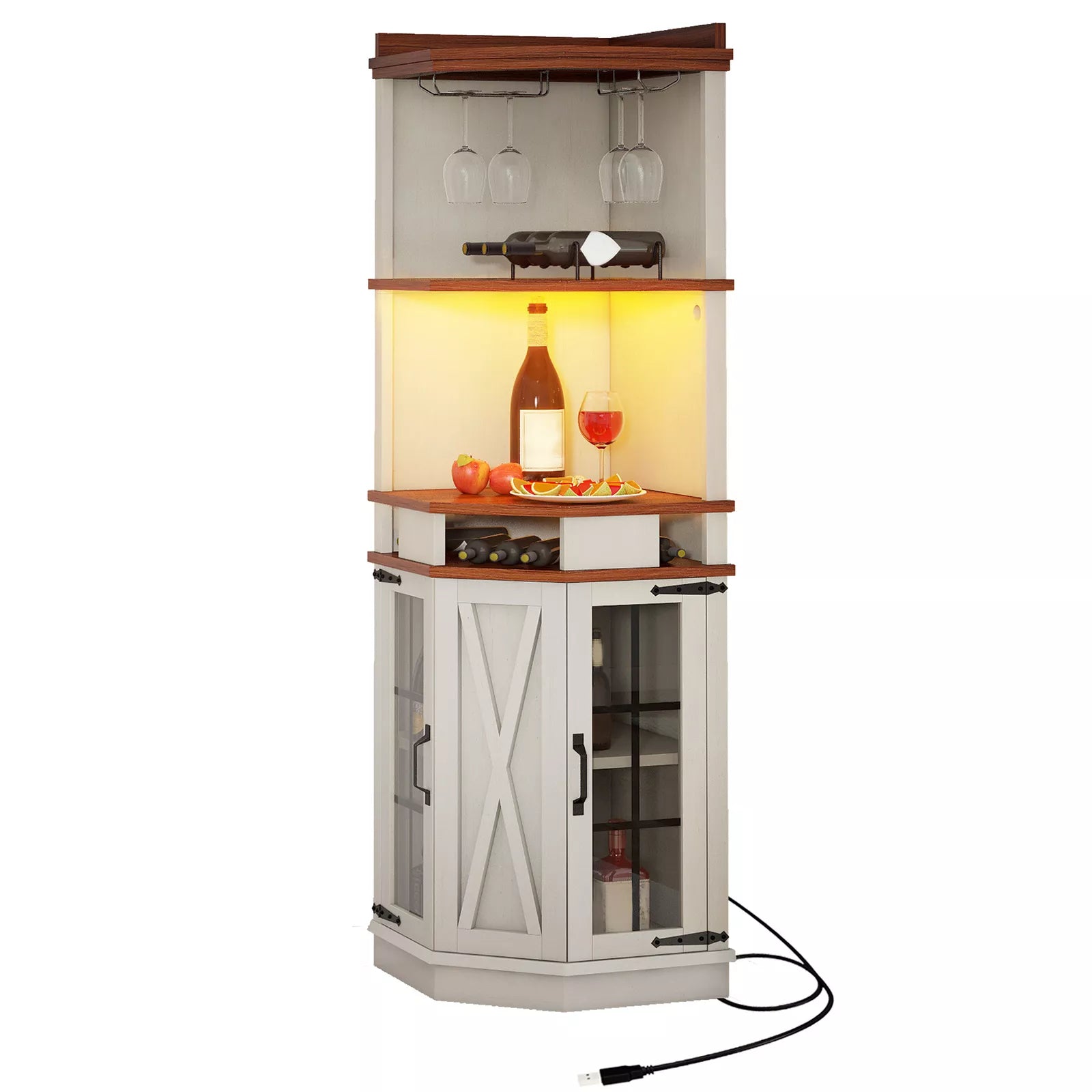 Greer Farmhouse Home Corner Bar Cabinet