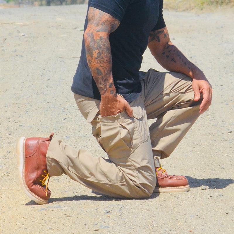 These Lighteme IX8 Tactical Pants are crafted using polycotton ripstop. a premium fabric blend that provides load-bearing capabilities. durability. and comfort far beyond anything else on the market. And with enhanced stitching. a stretchable waistband. you can stay fluid and unhindered when making quick. tactical movements.