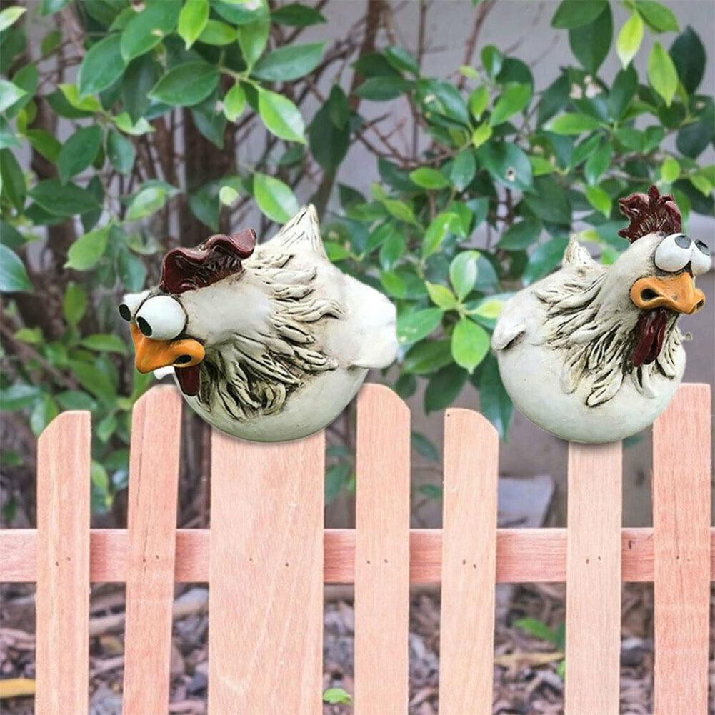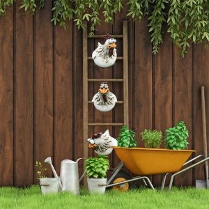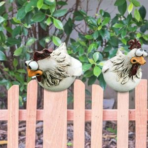 This funny chicken looks great and is sure to catch everyone’s eye. They surely bring a positive mood to your garden or house. With their hand-painted faces and bright colors. it’s fun to watch these unique chickens as they sit on their fence!