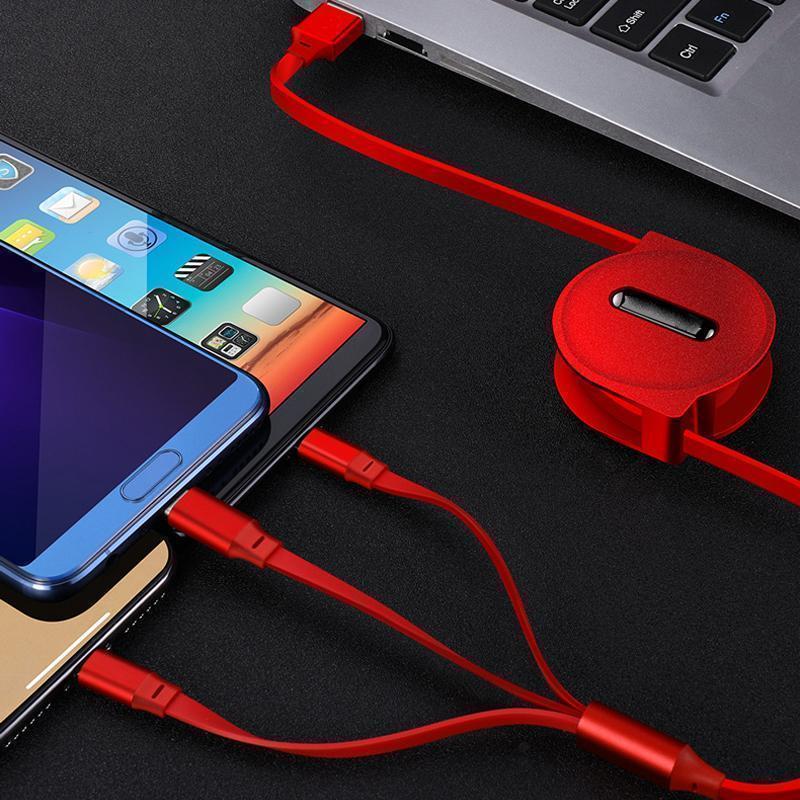 3 In 1 Telescopic Data Line. this USB data cable has 3 charging cables for C/ 8-pin Lightning/Micro USB charging. Not only can it be used to charge mobile phones. but it also has the function of data transmission. It supports synchronous data transmission and charging. [note: only the Apple connector supports data transfer. The other two can only be used for charging.