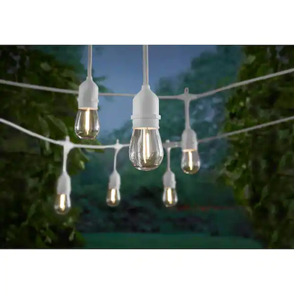 Lighteme 48FT Outdoor LED String Lights Plug-In – 24 Shatter Resistant and Waterproof Bulbs – Commercial Grade – UL Listed Heavy Duty Wire