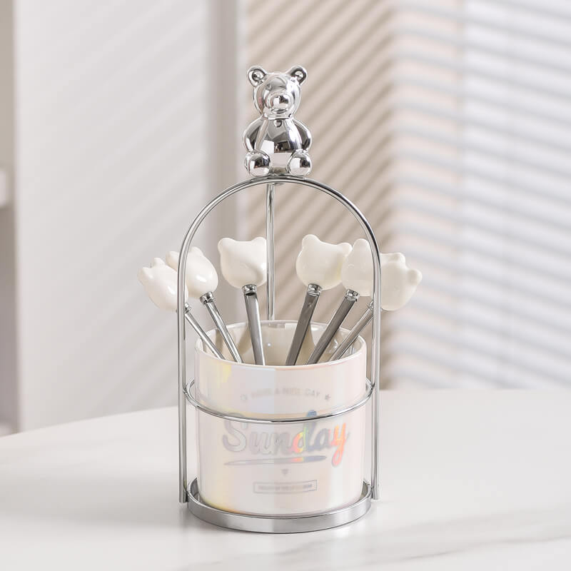 Lighteme Bear Ceramic Dessert Fork & Spoon Storage Jar: A Charming and Practical Kitchen Accessory