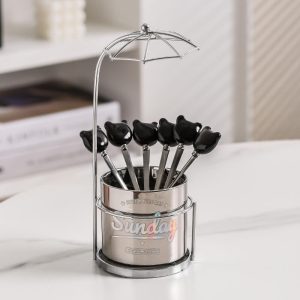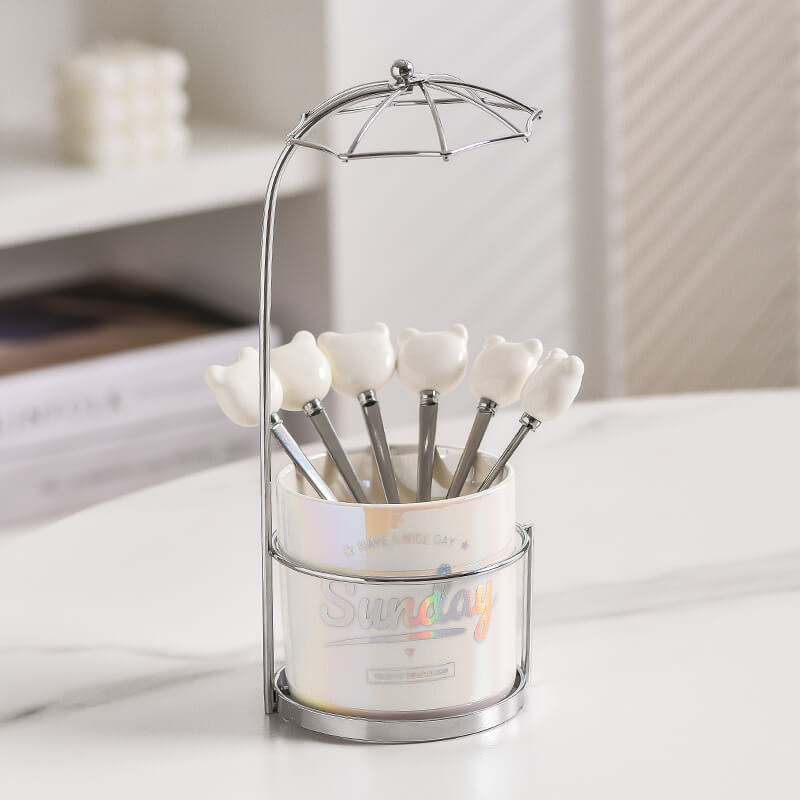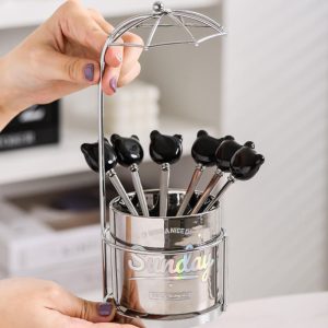 - Versatile Use: This storage jar is not only practical for storing dessert forks but also versatile. It can be used to store other small items such as spoons. chopsticks. or even small utensils. Its decorative nature makes it suitable for various spaces. including the kitchen. dining room. or even a coffee nook. It can be paired with other decorative elements that match the bear or umbrella theme. creating a cohesive and stylish look in your home.