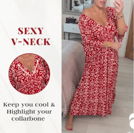 Transform your look and elevate your style effortlessly with our Lighteme Boho Print V-Neck Maxi Dress. designed to make you feel free-spirited and chic in an instant.