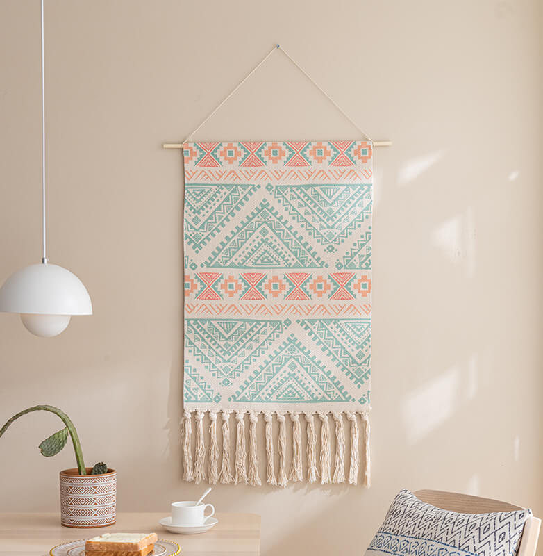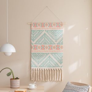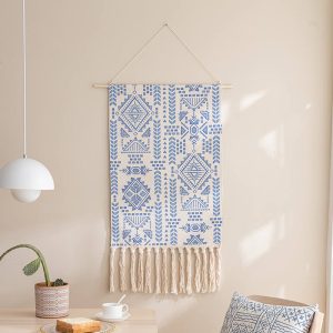- Gentle Cleaning: To keep the wall hanging looking its best. it’s essential to follow the care instructions. Since it should not be washed with water. using a dust remover regularly is the recommended cleaning method. This helps to remove dust and debris from the woven surface and the tassels. preserving its appearance.