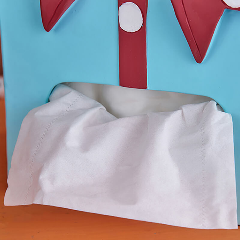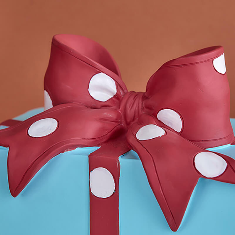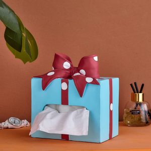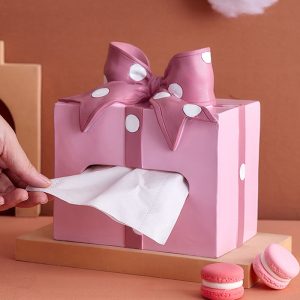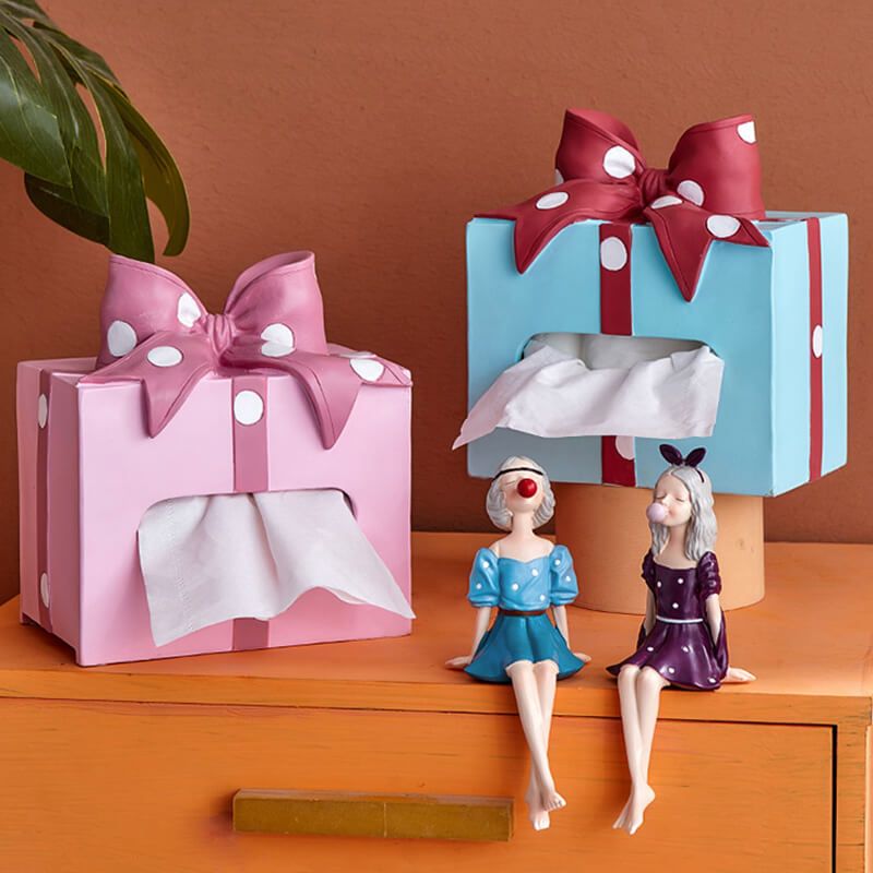 Revitalize your space with this whimsical tissue box. combining resin and iron craftsmanship for a cheerful blend of durability and style. Its bowknot polka-dot design and smooth. vibrant finish add a lively touch to desks. coffee tables. or entryways.