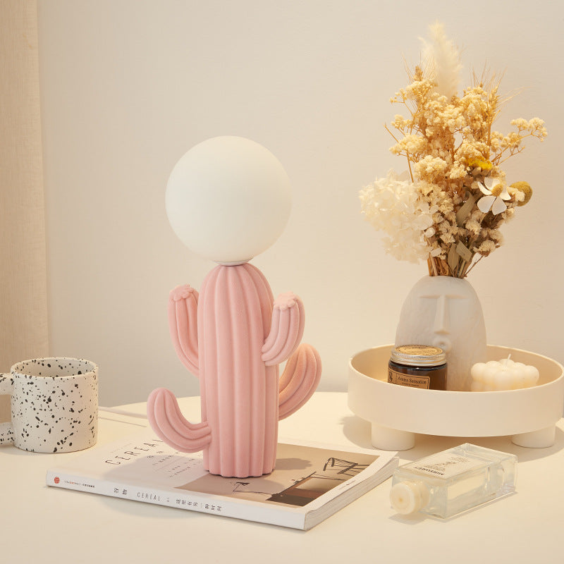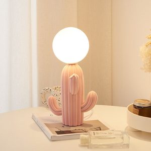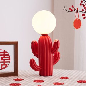 - Cartoon Cactus Motif: The lamp showcases a plump cactus with a cheerful face. oversized eyes. and a playful pose—either holding a glowing moon (glass sphere) or topped with a whimsical flower. Available in pink (with soft magenta spikes) or red (with bold crimson tones). each cactus exudes personality and charm.