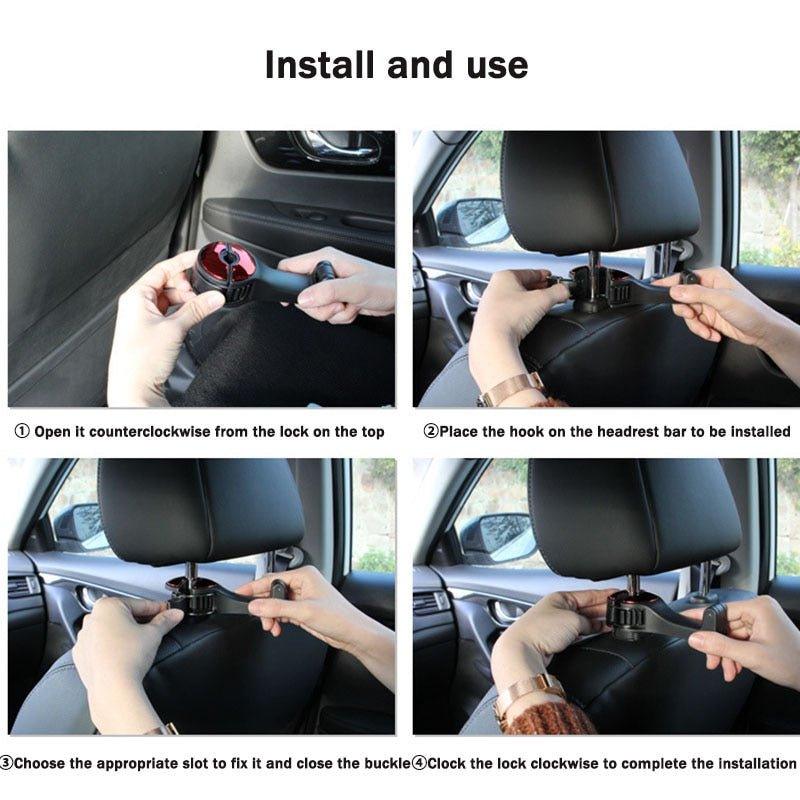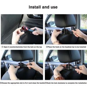 Stable and Damage-Free: The contact surface of the car hook with the car headrest is made of silicone. which does not scratch the headrest; the smooth knurled cap prevents the hook from loosening. The car seat back hook is equipped with a lock and becomes more stable when you close the lock after installation.