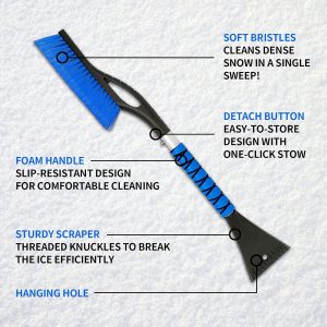 Say goodbye to scraping ice and snow off your car Designed to save you time and effort during the cold winter months.makes clearing snow from your car’s windshield. roof. and other surfaces quicker and easier. With its ergonomic design and durable materials. this tool is a must-have for anyone tired of struggling with frosty mornings and icy car exteriors.