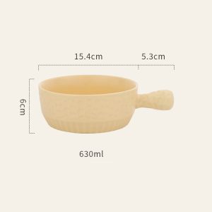 - Practical Handling: The handle design of the baking bowl makes it easy to handle. The handle provides a comfortable grip. allowing you to safely move the bowl in and out of the oven or from the kitchen to the dining table. It also adds to the functionality of the bowl. making it convenient to use for baking and serving. The handle is sturdy and well-designed. ensuring that it can withstand the heat and weight of the bowl and its contents.