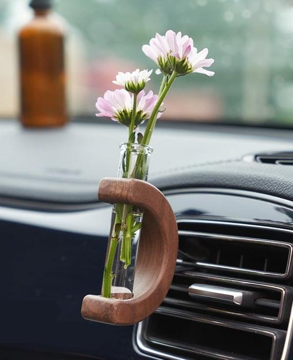 Experience the transformation of your daily drives with the Lighteme Compact Car Miniature Wood Flower Vase.