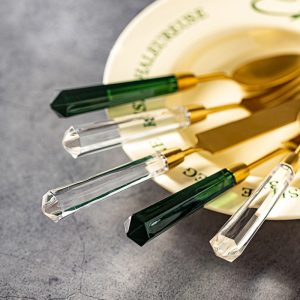 - Immediate Cleaning: Rinse utensils promptly after use to prevent food residue from drying. especially on the knife blade or spoon edges. Dry thoroughly with a soft cloth to avoid water spots on the crystal handles or rust on the steel.