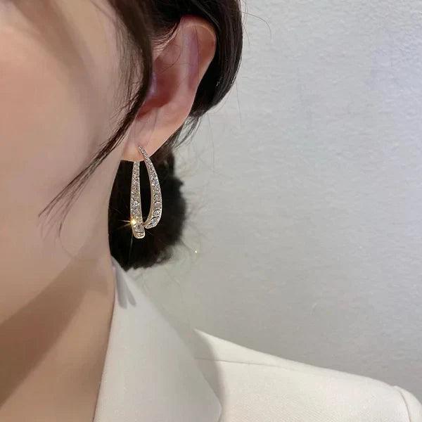 - 1 pair of Lighteme Curved Earrings with Luxury Rhinestones