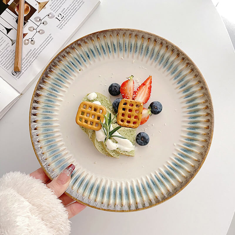 Lighteme Embossed Vertical Grain Ceramic Plate