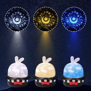 - Bright Star Projector: Your child will be mesmerized by the rotation stars and moon. Luminous and colorful LED lights create a calm ambiance in your child’s room. giving them a good sleep.