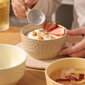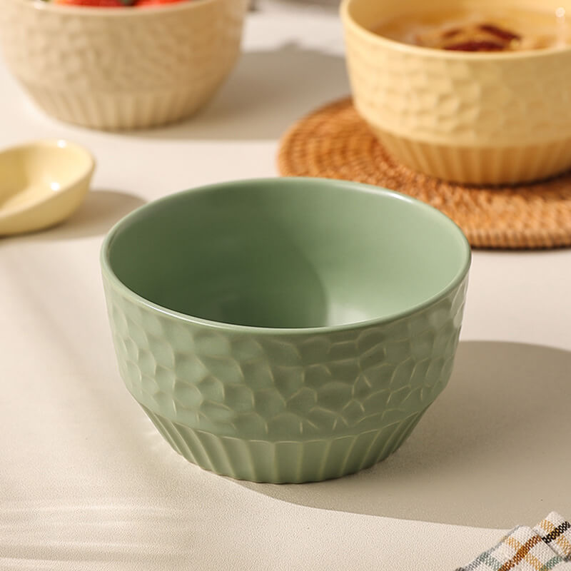 The Lighteme Grid Embossed Ceramic Bowl (Item No: 202306BO05) is a masterclass in understated elegance. blending a modern grid embossment with the muted. sophisticated hues of the Morandi color palette. Crafted from high-quality ceramic. this bowl offers durability. tactile interest. and a refined aesthetic that elevates both casual meals and formal gatherings.