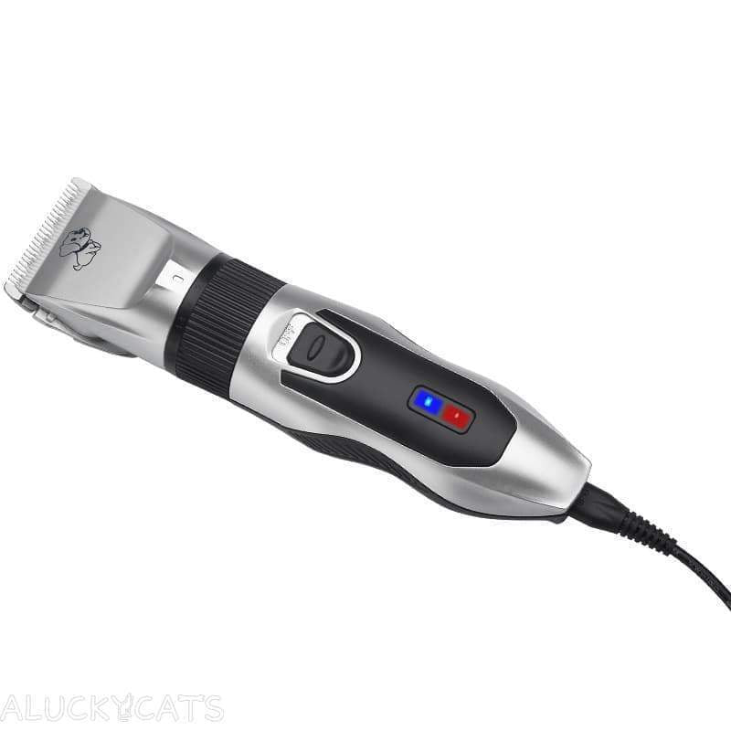 For this Hair Clippers when working it is super quiet design.And the noise is less than 55d .it help your pet feel at ease and confortable .get hair cut smoothly.Note: if your pets get long and thick hair . you need to use scissors cut shorter at first . otherwise the clippers may jam up and don’t work properly.
