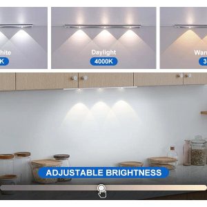 3 OPERATION MODES ADJUSTABLE – Lighteme comes with a 3-mode switch. allowing you to turn the light on and off as well as switch to motion sensor mode. Thus. you can use this kitchen light as a regular night light for cabinets and drawers or as a motion detector. In G mode and in low light. the cabinet light automatically detects human movement within a 1.5-meter range and turns off automatically after 25 seconds without movement.