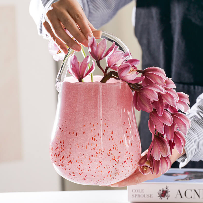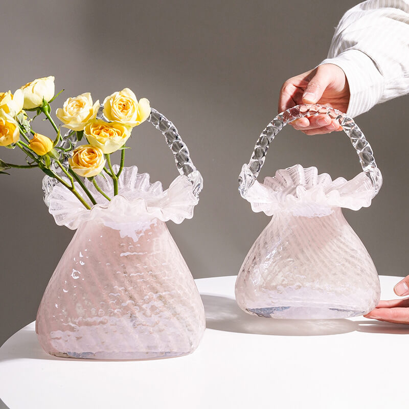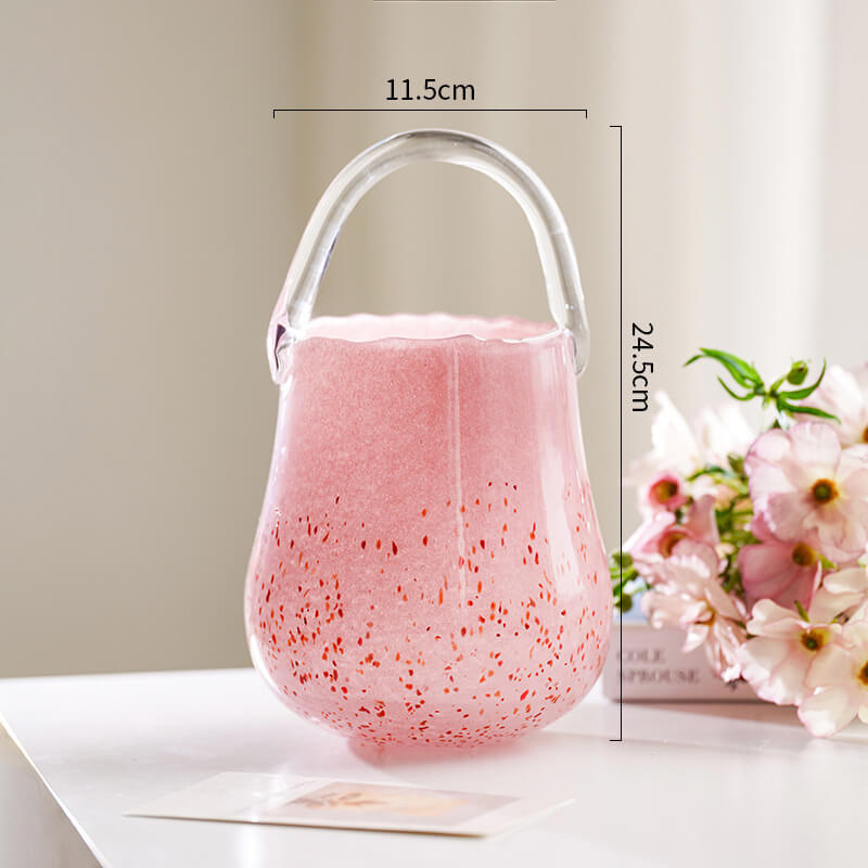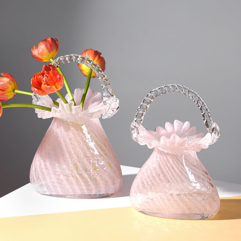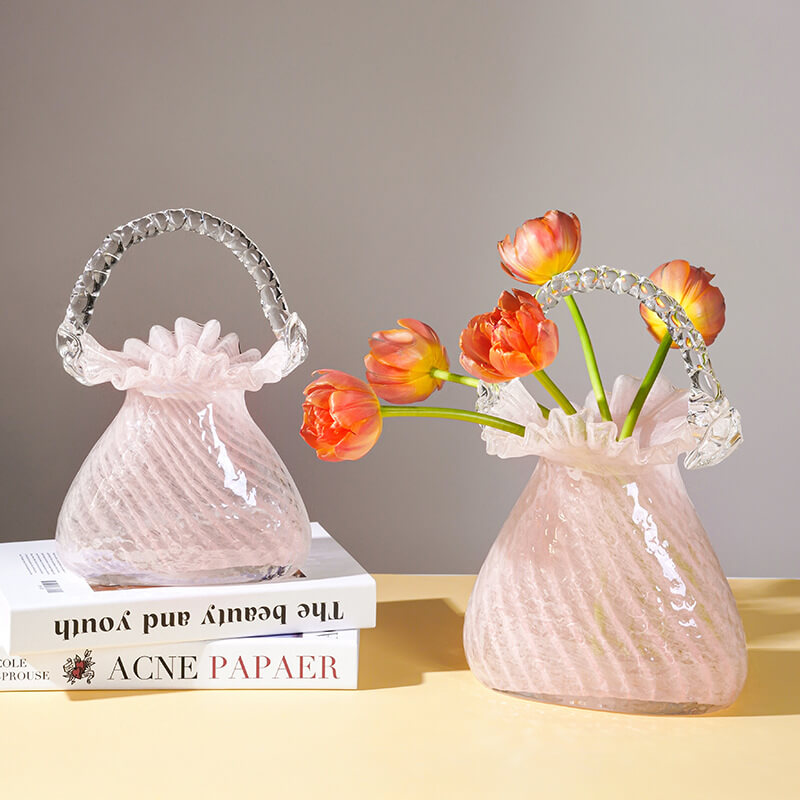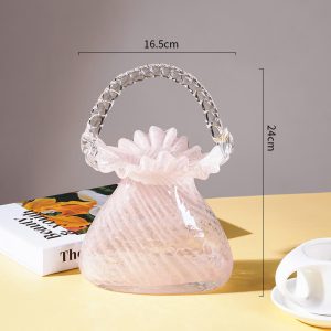 - Creative Element: This vase is a creative decor piece that stands out from traditional vases. The manual blowing technology gives it a unique and artisanal feel. The handbag design allows for creative flower arrangements. making it suitable for hydroponic use. It can hold fresh or artificial flowers. enhancing the beauty of the arrangement. The glass material allows light to pass through. highlighting the design and creating a beautiful display.