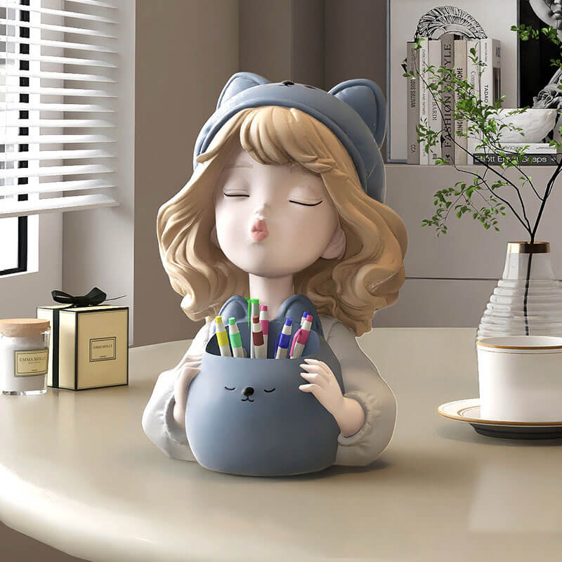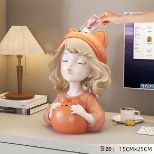 Delight children and brighten spaces with this adorable bear girl-shaped resin ornament. offering dual functionality as a classic piggy bank (Model A) or a decorative pen holder (Model B). Its charming design and vibrant colors make it an ideal gift for birthdays. room decor. or teaching kids the joy of saving.