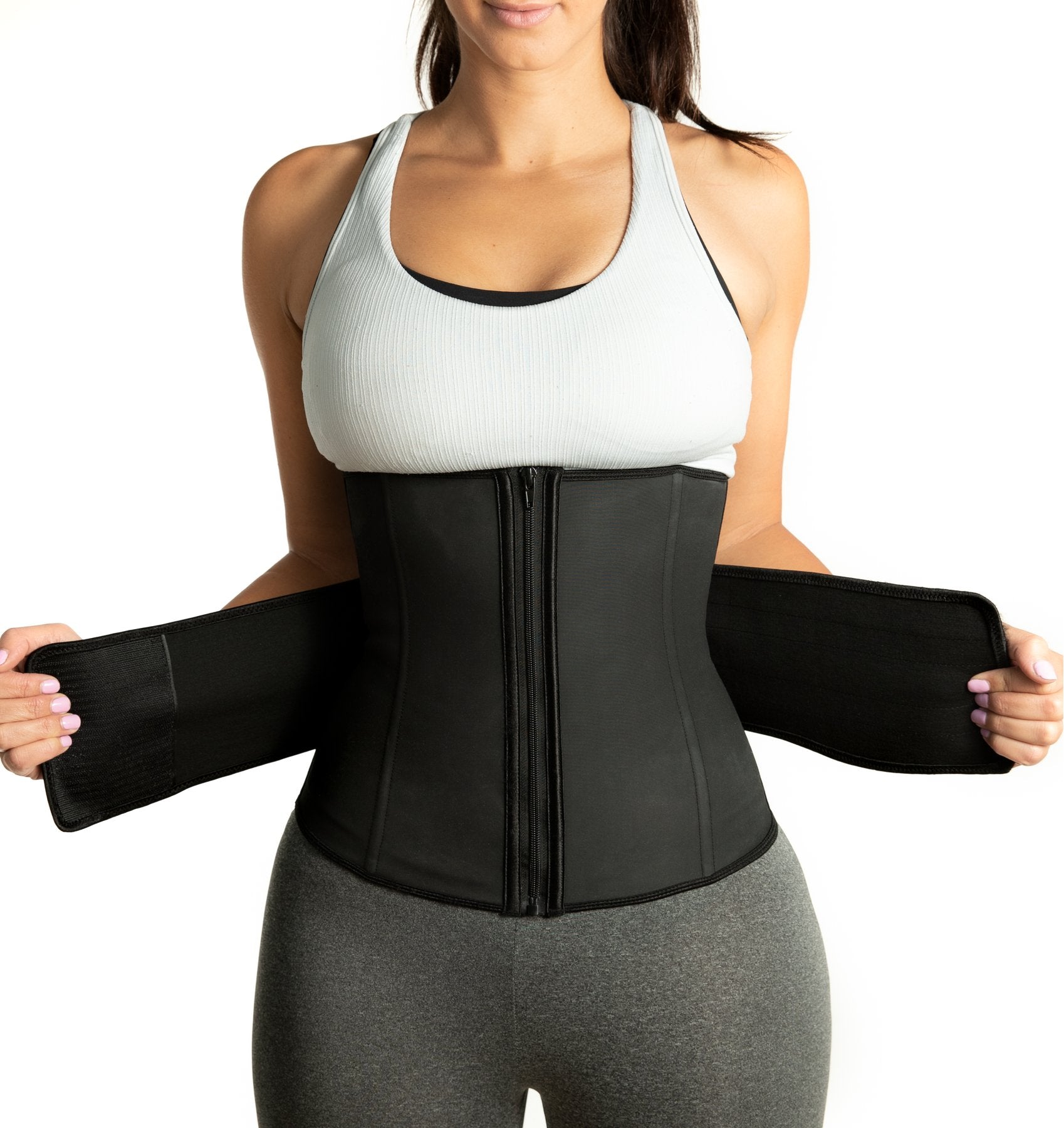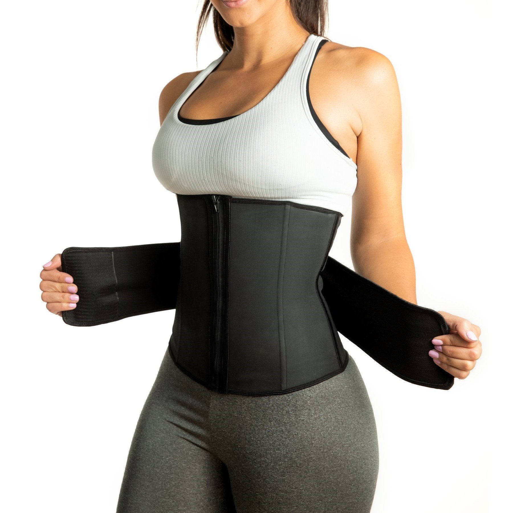 Experience the difference with the support & coverage of a classic waist trainer but with the flexibility. adjustability. and comfort of a sweatband. The Lux Waist Trainer Belt can be worn during high-intensity workouts. cardio. and abdominal exercises. It features a zip-up fastener and adjustable elastic Velcro straps for different levels of compression.