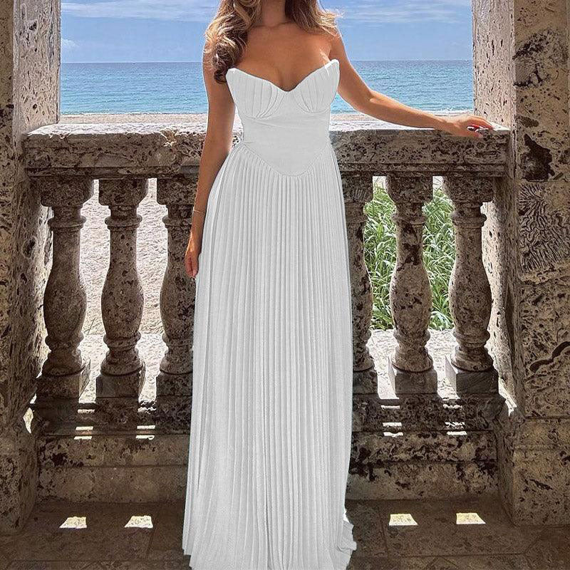 The Lighteme Luxury Corset Maxi Dress combines the timeless elegance of a high waist with the allure of an off-shoulder design.