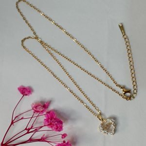 Lighteme is a limited edition necklace with a heart-shaped pendant that has a large gemstone in the center. When you move. the gemstone also moves. creating an illusion that simulates the beating of a real heart.