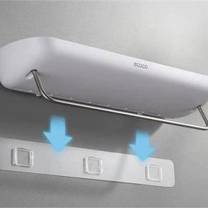 The thoughtfully designed drain holes ensure efficient drainage. keeping your items dry and tidy. Made from durable plastic and stainless steel. our shelf is built to last. adding convenience and style to your daily routine.