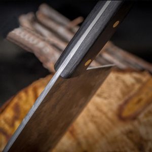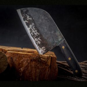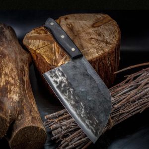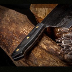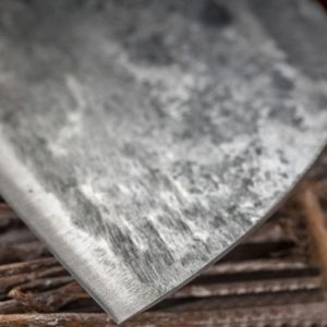 Handcrafted from high-carbon steel using ancient Far Eastern techniques. made by experienced blacksmiths. cut and chop anything with this versatile hardened carbon steel blade. Whether it is vegetables. meat or even wood. it cuts effortlessly through everything. This will really be the last knife you will use! It has the perfect weight. feel. balance. finish and sharpness. even for the outdoors!