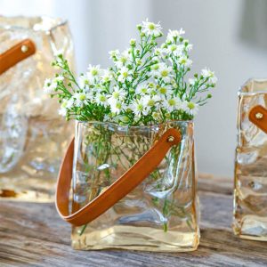 - Enhancing the Room’s Aesthetic: This pleated bag glass vase can instantly transform the look of a room. Its unique design and glass material make it a stylish addition to any space. It can add a touch of elegance and fashion to a plain or dull room. making it a great option for those who want to make a statement with their decor. Whether you want to create a cozy and inviting living room or a more refined and elegant bedroom. this vase can play an important role in achieving the desired aesthetic.