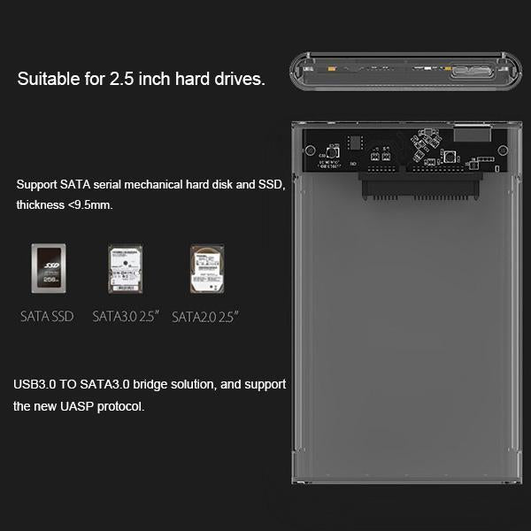 - External Hard Drive Enclosure. can easily connect your 2.5 SATA 7mm-9.5mm SSD / HDD to a Laptop. PC or other USB terminal device for data transfer. Max support 4T.