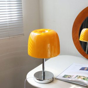 - Side Table Statement: Position on a side table or console to elevate living rooms with a blend of retro and modern decor. The lamp pairs well with leather furniture. wooden accents. or neutral-colored textiles.
