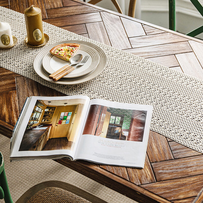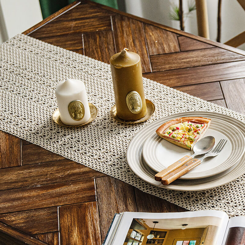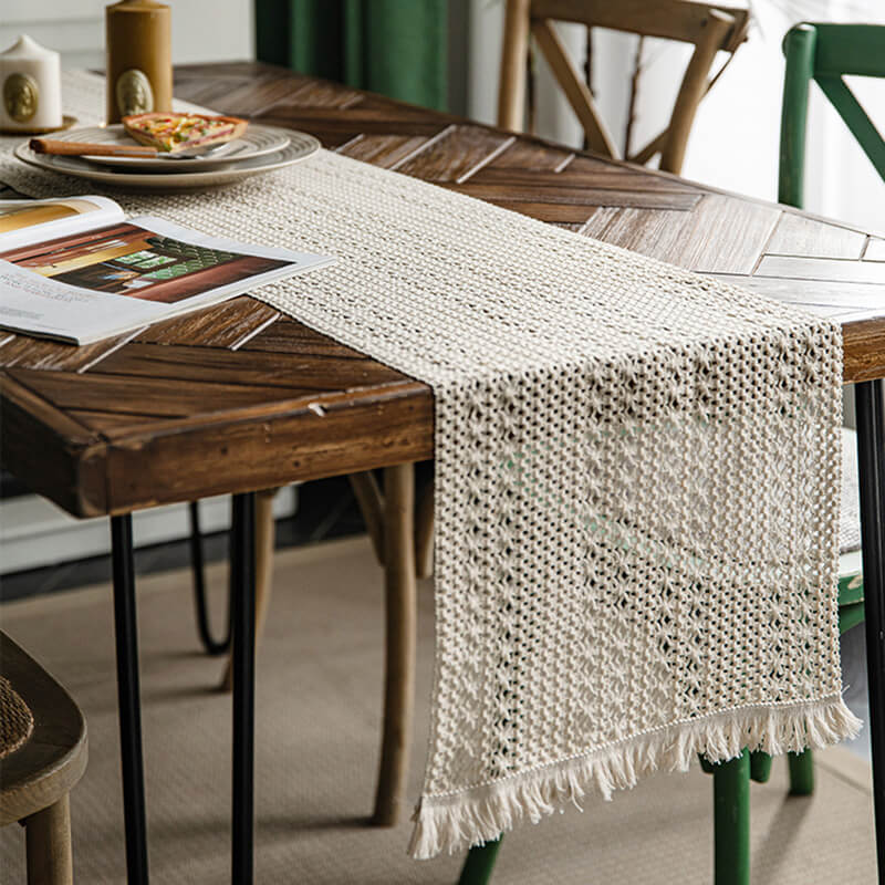 This Woven Hollow Tassel Jute Table Runner features high-quality jute material and intricate woven design for a natural and rustic texture. The addition of playful tassel accents creates a bohemian touch. making it a perfect choice for eclectic style lovers. A beautiful and durable addition to any table setting.