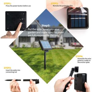 - Ground Mounting: Secure panel stake in soft soil (avoid concrete)