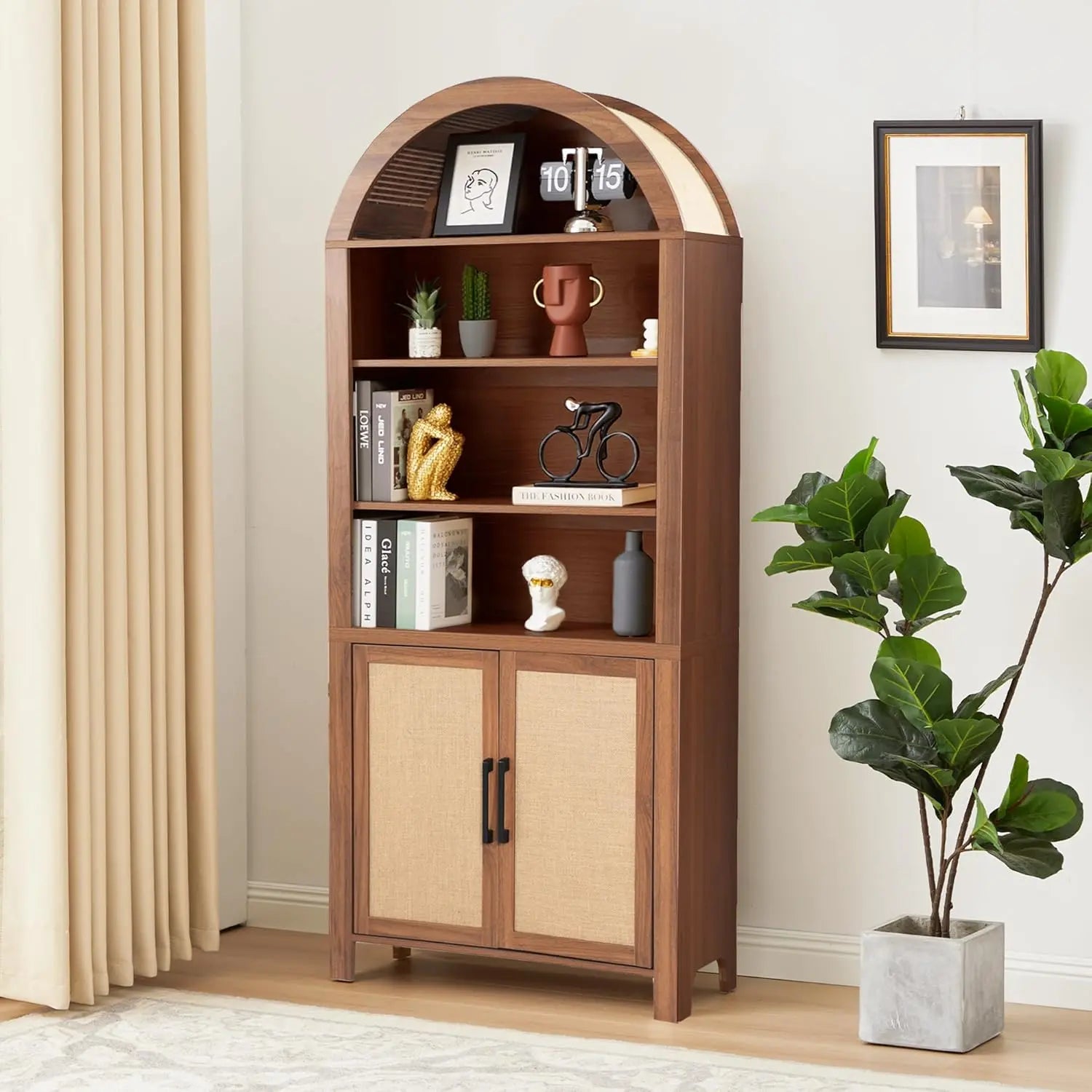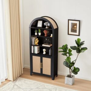 Rattan Tall Arched Storage Display Cabinet