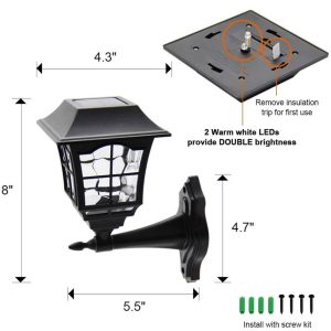 - Package Includes: 4 x solar wall lanterns. mounting kits. and user instructions