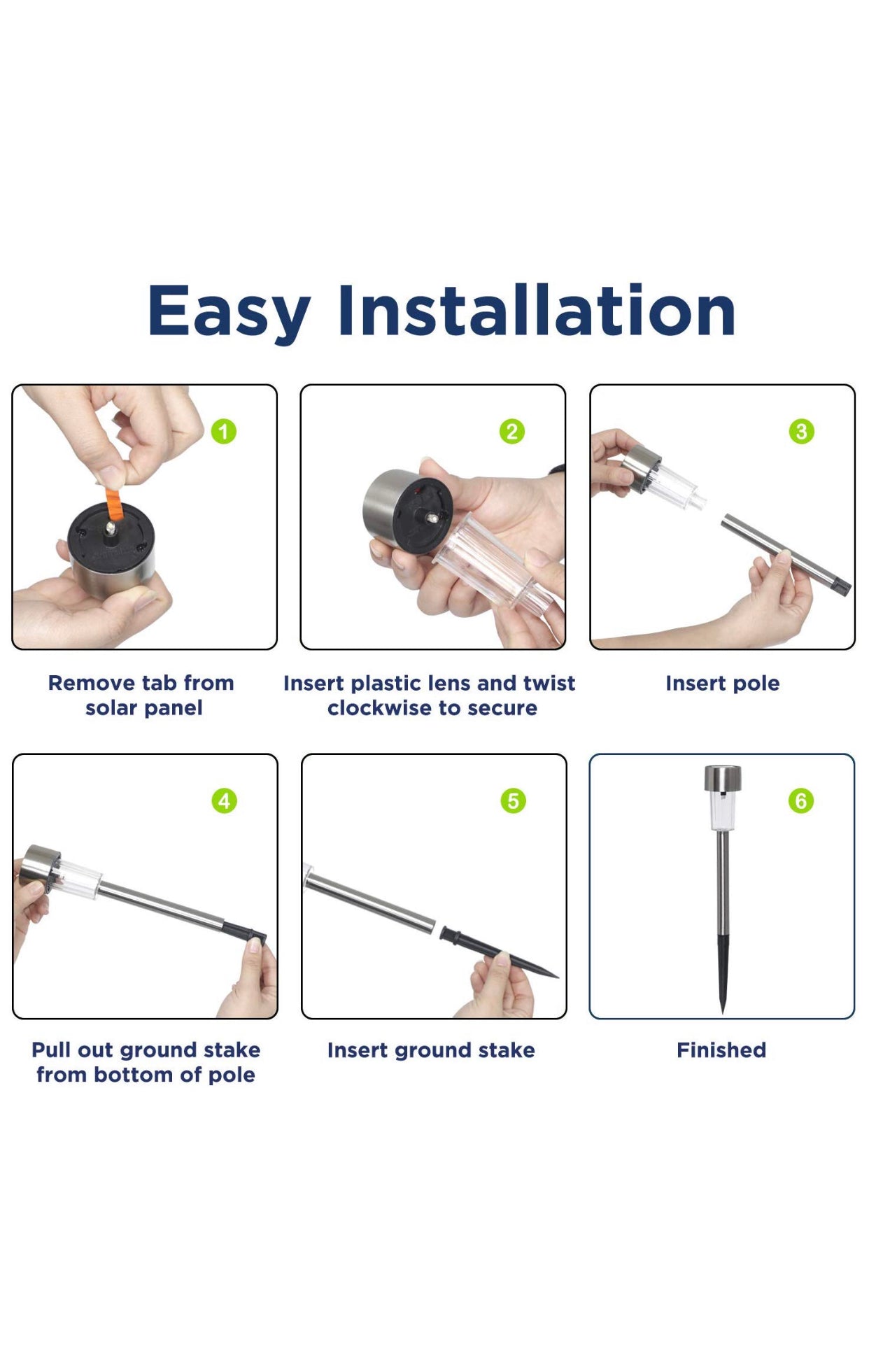 - Easy Assembly & Installation: Includes all necessary components—light units. stake parts. connectors. and robust ground spikes—for simple setup without tools.