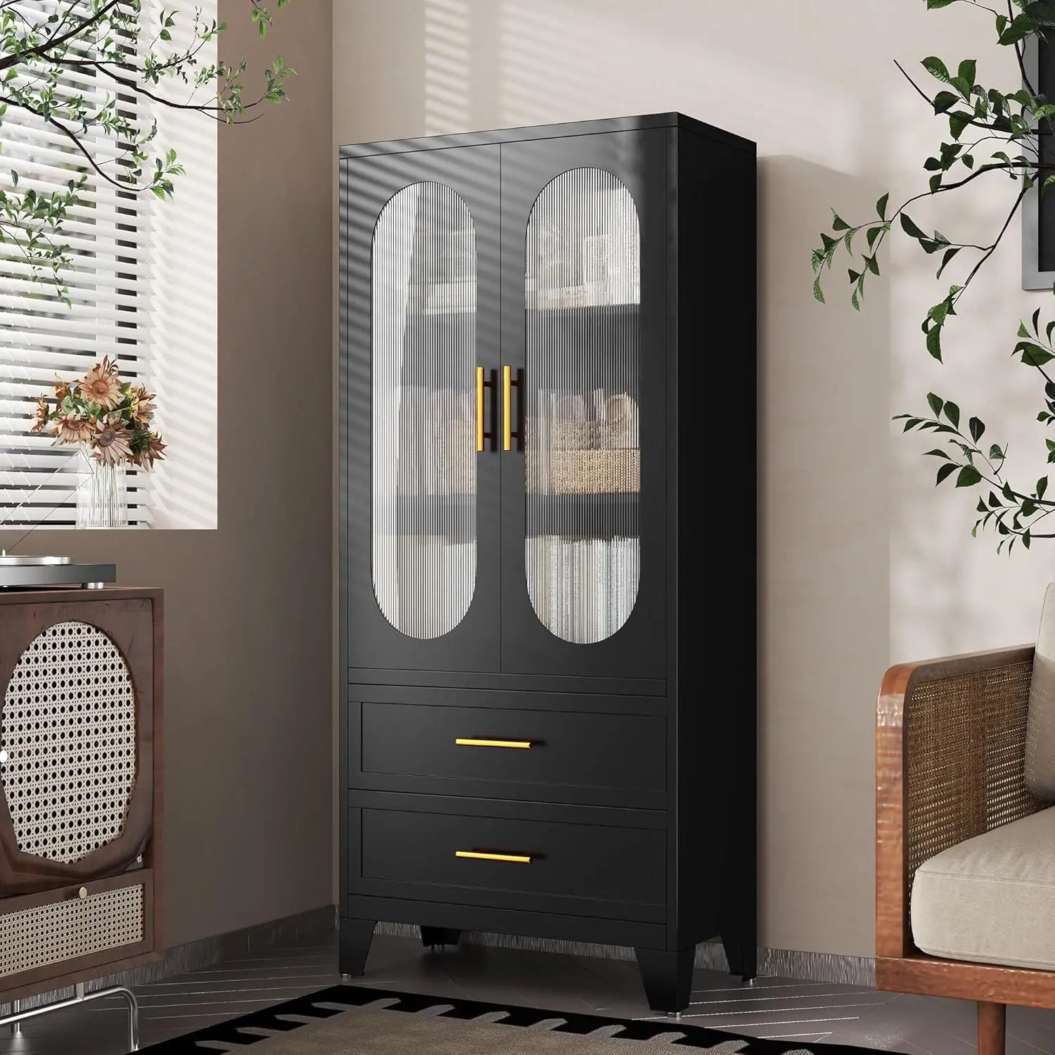 Tess Black Cabinet With Glass