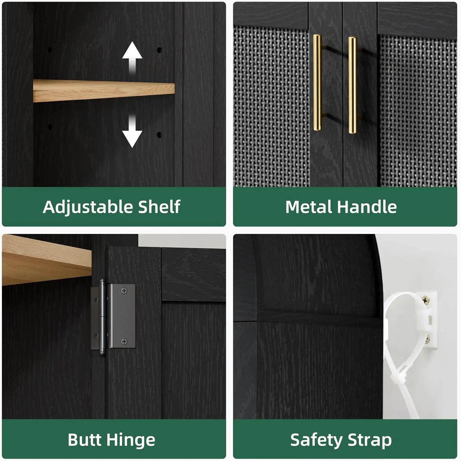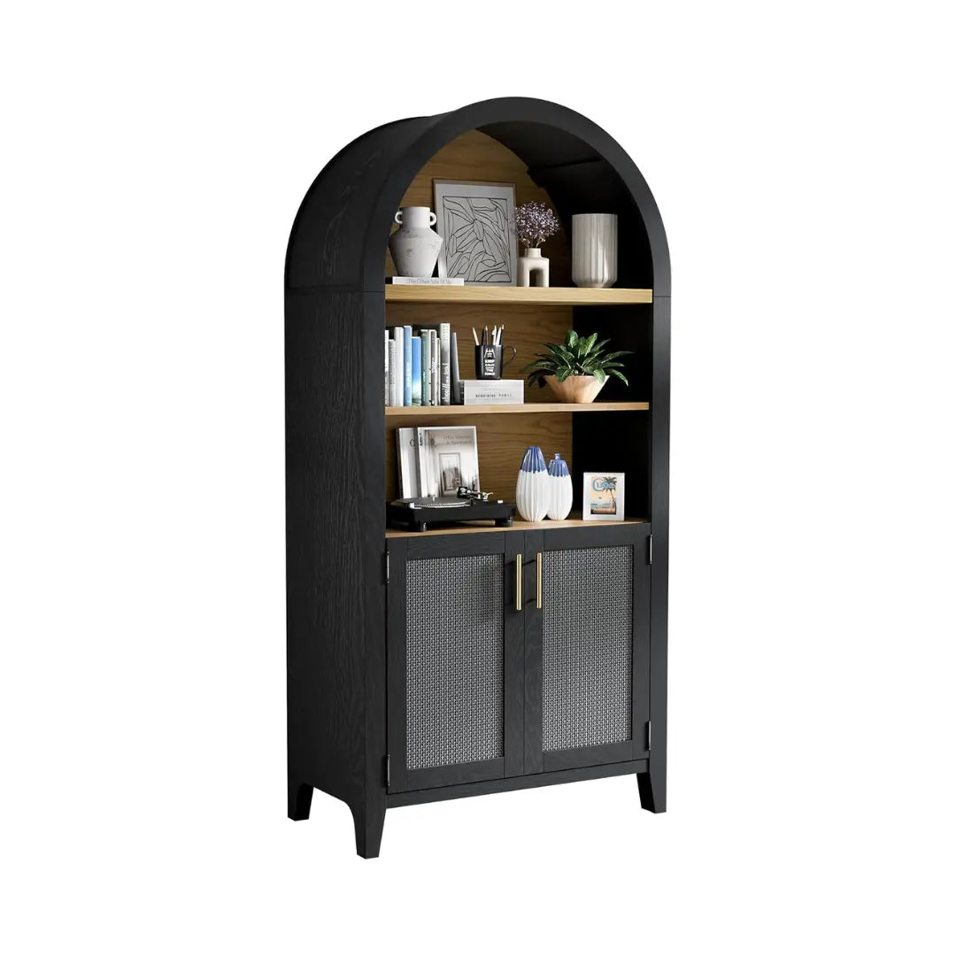 This arched display cabinet‘s spacious interior offers adjustable shelves for versatile storage and display options. while the sleek finish adds a touch of modern elegance. Elevate your living space with our tall arched cabinet. perfect for highlighting your collectibles and enhancing your home’s aesthetic.