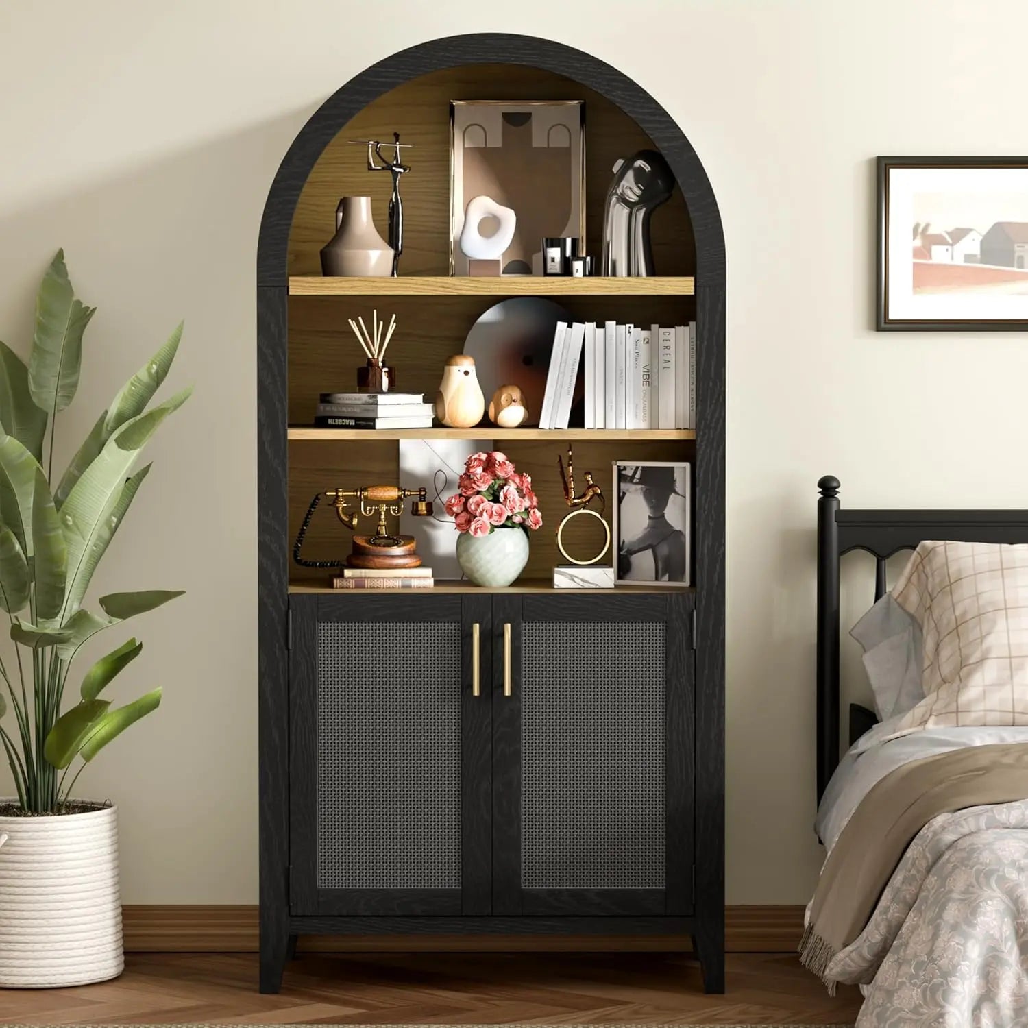 Wide Rattan Arched Storage Display Cabinet