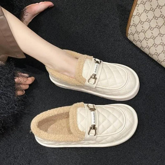 Lighteme Joobesty Solid Fluffy Crisscross Design Flat Slippers