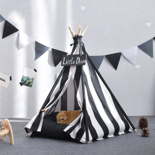 Lighteme Hundezelt mit schwarz-weißen Streifen (ohne Kissen)