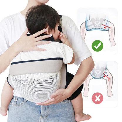 Unsere Babytrage besteht aus einem Stoff mit einer Struktur, die es Ihnen ermöglicht, Ihr Kind nah an Ihrem Körper zu halten. Ihr Baby kann Ihren Herzschlag hören, Ihre Körperwärme spüren und Sie umarmen, während Sie sich bewegen.