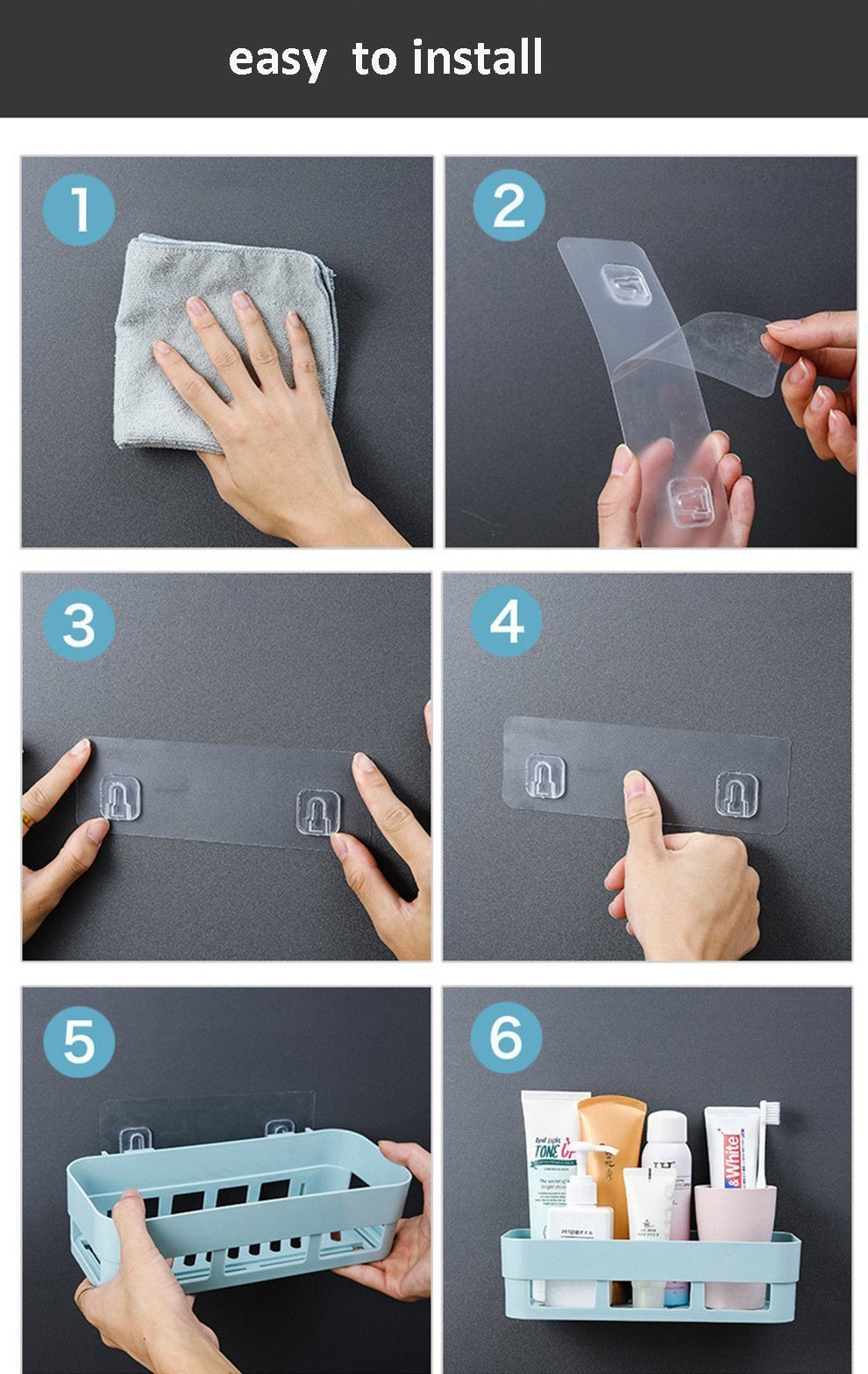 ✅ Kleberegal, kein Bohren erforderlich: Einfache Installation mit leistungsstarker Klebetechnologie, keine Beschädigung der Wand , kein Werkzeug, kein Bohren, keine Schrauben, keine Löcher .