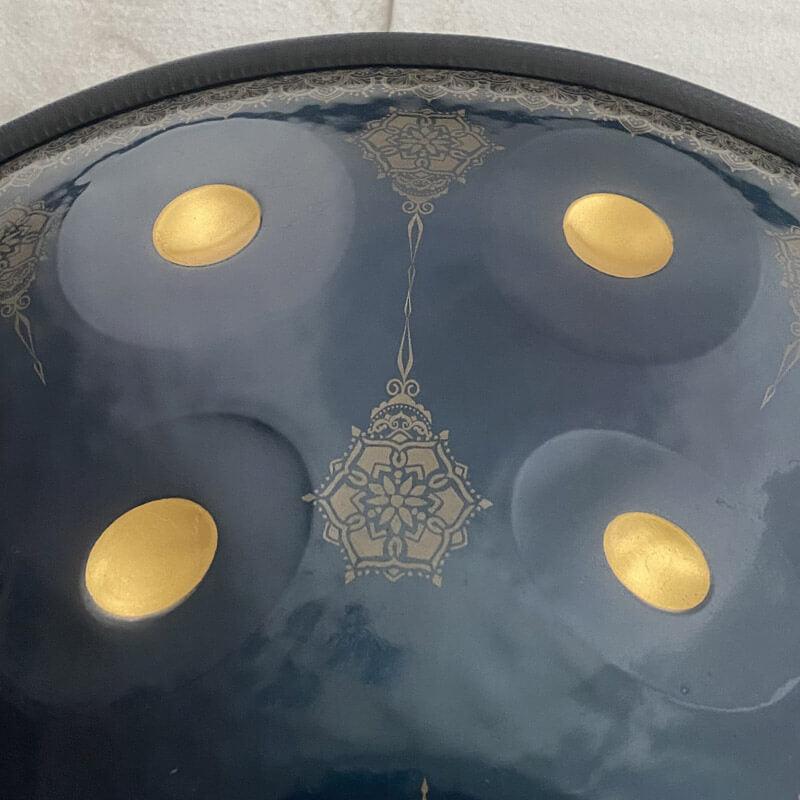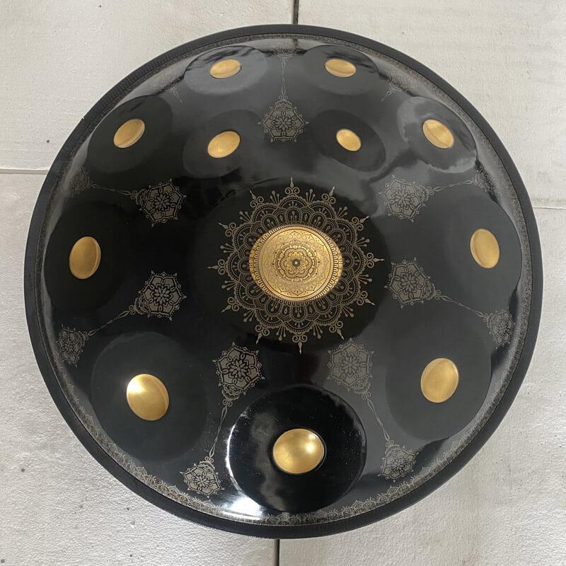 F3 Royal-Garden-vergoldete Klangfläche Individuelle Handpan-Trommel--Das Material ist hochwertiger und der Klang ist schöner. --Lasergraviertes Mandala-Muster. Verblasst nie.