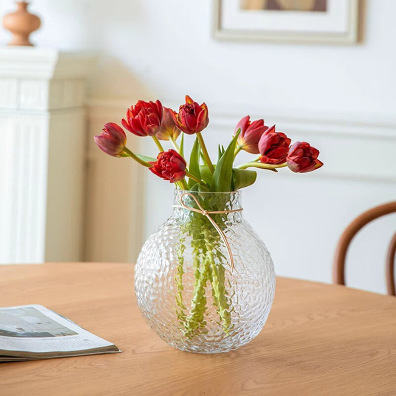 - Haltbarkeit und Klarheit : Die Verwendung von hochwertigem Glas gewährleistet eine lange Lebensdauer dieser Vase. Glas ist ein robustes Material, das regelmäßiger Nutzung und Handhabung standhält. Es bietet hervorragende Klarheit und lässt die Schönheit der Pflanzen und des Eismusters durchscheinen. Das Glasmaterial verleiht der Vase ein klares und elegantes Aussehen und macht sie zur idealen Wahl für die Präsentation Ihrer Dekorationsgegenstände.